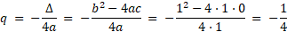 Wierzchołek ma współrzędne W(p, q), które obliczamy za pomocą wzorów