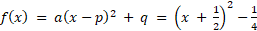 Wyznacz współrzędne wierzchołka paraboli o równaniu f(x) = x2 + x korzystając ze wzorów na współrzędne wierzchołka paraboli, a następnie wyznacz postać kanoniczną tej funkcji.