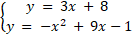 Określ, czy prosta y = f(x) = 3x + 8 jest styczną bądź sieczną funkcji kwadratowej y = g(x) = –x2 + 9x – 1.