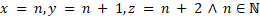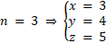 Długości boków trójkąta wyrażają się liczbami dodatnimi. Tworzymy założenia, zapisując odpowiednio kolejne liczby naturalne. Następnie układamy równanie kwadratowe na podstawie twierdzenia Pitagorasa, które rozwiązujemy, porównując wynik z założeniami i wyznaczamy liczby x, y, z.