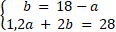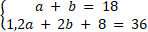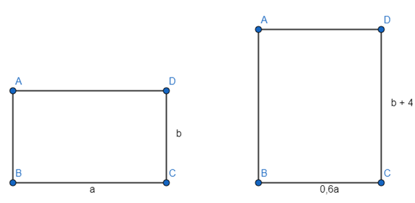 Stwórz układ równań wiedząc, że obwody obu prostokątów są równe 36. Wyznacz wartości a i b i oblicz pole prostokąta.
