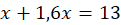 Przyrównaj sumę wyżej zapisanych wyrażeń do 13 i rozwiąż otrzymane równanie: