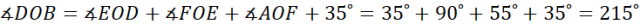 Skorzystaj z własności kątów przyległych i wierzchołkowych. Najpierw wyznacz mniejsze kąty, a następnie wskazane kąty wklęsłe.
