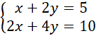 Układ będzie nieoznaczony, jeśli oba równania będą takie same, lub będzie je można sprowadzić do takiego samego równania po przekształceniu obustronnym. Zauważ, że współczynniki w drugim równaniu są dwa razy większe niż w pierwszym. Aby układ miał nieskończenie wiele rozwiązań, uzupełnij lukę liczbą dwa razy większą od 5.