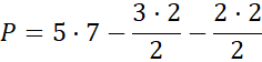W tym zadaniu musisz zapisać pole figury jako różnicę pola prostokąta i pewnych trójkątów.