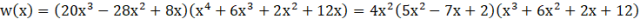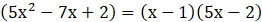 Rozkładamy wielomiany na czynniki korzystając z metody grupowania lub wyliczenia miejsc zerowych funkcji kwadratowej i jej postaci iloczynowej.