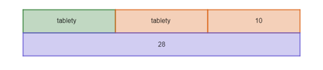 Laptopów jest o 10 więcej niż tabletów, więc ich ilość możemy zapisać jako ilość tabletów + 10. W sumie tabletów i laptopów jest 28, czyli suma tablety + tablety + 10 wynosi 28.