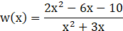 Wyrażenie w mianowniku ułamków musi być różne od zera. Podstawiamy w miejsce x argumenty-1, -2, żeby obliczyć wartości wyrażenia.