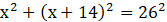 Korzystamy z twierdzenia Pitagorasa podstawiając x oraz x + 14 jako przyprostokątne, wyznaczamy x z równania kwadratowego.
