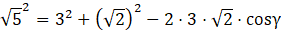 Dla dowolnego trójkąta kwadrat jednego z boków jest równy sumie kwadratów dwóch pozostałych odjąć podwojony iloczyn długości tych boków oraz cosinusa kąta między nimi.