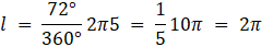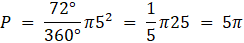 Dany jest okrąg o promieniu 5, w który został wpisany wielokąt foremny. Wyznacz, jakie pole ma zacieniowana część oraz jak długi jest zaznaczony łuk.