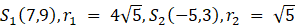 Z podanych równań okręgów mamy, że