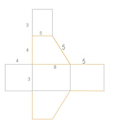 Stwórz siatkę graniastosłupa prostego o wysokości 3 i trapezie prostokątnym w podstawie. Podstawy trapezu mają długość 5 i 8 a krótsze ramię 4.