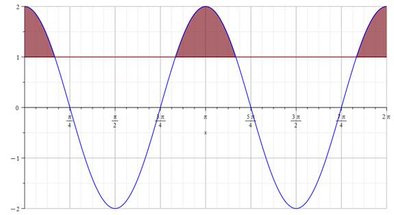. Obszar zaznaczony na czerwono to obszar, dla którego prawdziwa jest nierówność