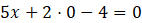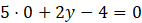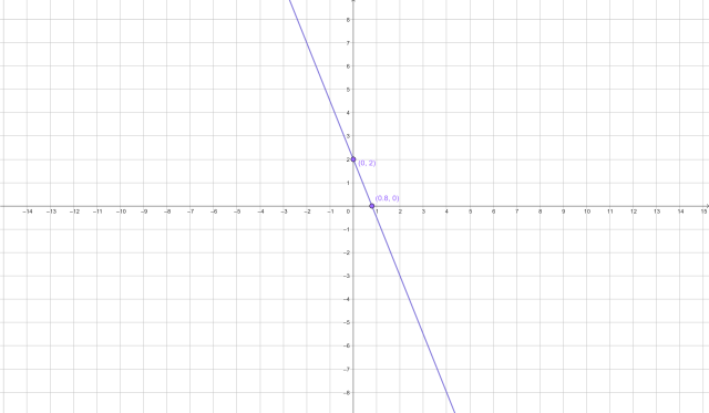 Mając dane równanie 5x + 2y – 4 = 0, określ, w jakich punktach ta prosta przecina się z osiami x oraz y. Narysuj tę prostą.