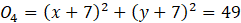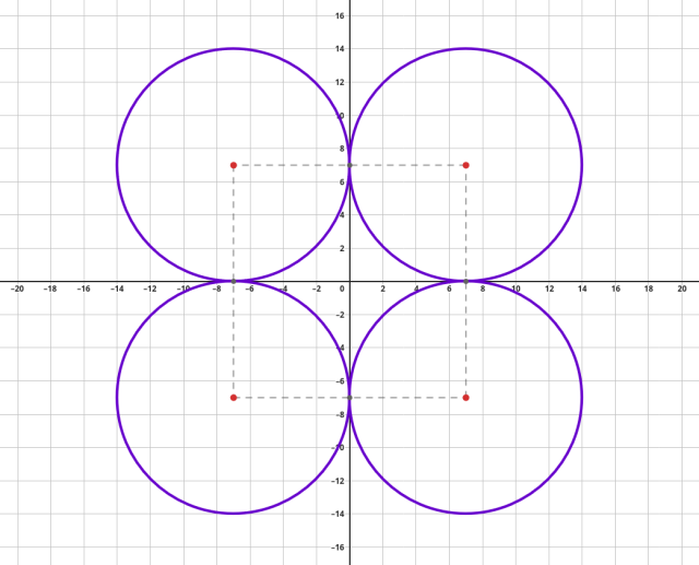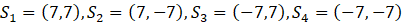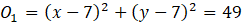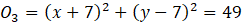 Żeby punkt mógł być środkiem okręgu o promieniu 7 oraz był styczny do obu osi układu, to odległość tego punktu od prostych musi być równa 7. Jest więc czterech kandydatów: