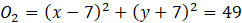 Podaj równania okręgów o promieniu 7, wiedząc, że są one styczne do obu osi układu współrzędnych.