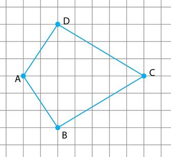 Zaznacz punkt A w dowolnym punkcie kratowym. Przesuń się o dwie kratki w prawo i o trzy w dół, a otrzymasz punkt B. Z punktu B przesuń się o pięć kratek w prawo i o trzy w górę — otrzymasz punkt C. Stamtąd przesuń się o pięć kratek w lewo i o trzy kratki w górę, aby otrzymać punkt D.