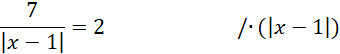 Zapisz dziedzinę wyrażenia. Zauważ, że mianownik nie może być równy zero. Opuść wartość bezwzględną. Ze względu na to, że zero nie jest ani liczbą dodatnią ani ujemną to równanie będzie posiadać jedno rozwiązanie