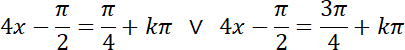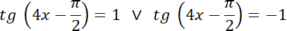 Aby rozwiązać równanie, zacznij od spierwiastkowania go obustronnie i rozdzielenia na alternatywę dwóch równań. Następnie dla każdego z równań znajdź argumenty, dla których tangens przyjmuje odpowiednio wartości 1 oraz -1. Przyrównaj wyznaczone wartości do argumentu tangensa