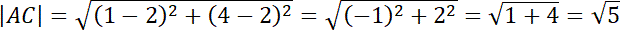 Oblicz długości boków trójkąta ABC, korzystając ze wzoru na odległość między dwoma punktami: