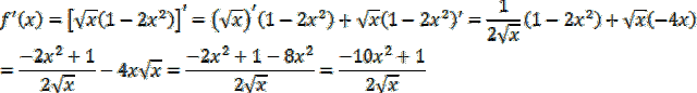 Następnie oblicz pochodną w podanych punktach, podstawiając w miejsce zmiennej x te wartości.