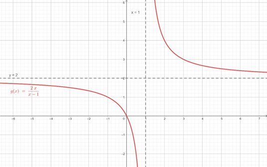 Pamiętaj, że wyrażenie w mianowniku nie może się zerować – tym sposobem określisz dziedzinę. Zbiór wartość możesz określić na podstawie wykresu lub tego, że funkcja nie przyjmuje jedynie wartości z asymptoty poziomej y = 2.