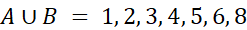 Aby dowiedzieć się jakie elementy należą do sumy zbiorów A i B, należy połączyć elementy występujące w zbiorze A oraz elementy zbioru B w jeden zbiór. Gdy element się powtarza np. 2, zapisujemy go tylko raz.