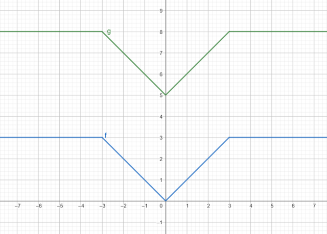 , należy każdy punkt znajdujący się na wykresie narysowanej funkcji przesunąć o 5 jednostek do góry.