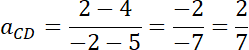 Wyznacz wartość współczynników kierunkowych i równania prostych zawierających boki czworokąta ABCD przedstawionego na rysunku i wykaż, że jest on równoległobokiem.