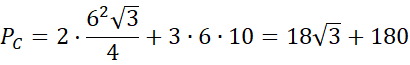 Na koniec oblicz pole całkowite bryły, czyli sumę dwóch pól podstawy i ścian bocznych.