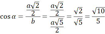 Z funkcji cosinus w podanym trójkącie prostokątnym wyznacz długość wysokości ściany bocznej. Następnie skorzystaj z twierdzenia Pitagorasa w trójkącie będącym połową ściany bocznej i wyznacz długość krawędzi bocznej. Na koniec oblicz cosinus podanego kąta w tym trójkącie i skorzystaj z jedynki trygonometrycznej, aby obliczyć jego sinus.