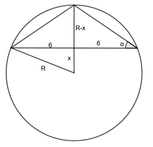 Wyznacz odległość tej podstawy od środka kuli opisanej na tym stożku, jeśli promień podstawy stożka jest równy 6 cm, a kąt między tworzącą a podstawą ma miarę