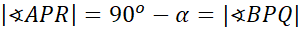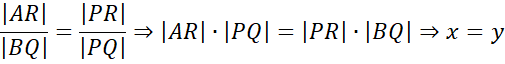 - trójkąt ABC jest równoramienny więc . Co oznacza, że trójkąty APR i BPQ są podobne z cechy KKK. Na tej podstawie: