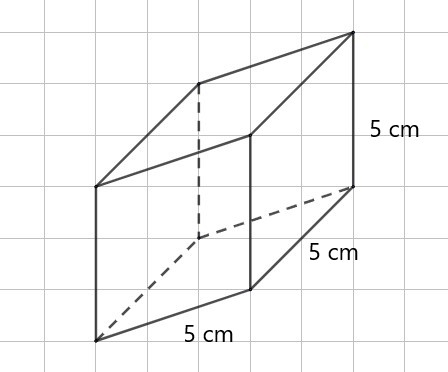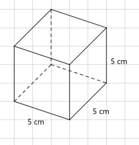 Sześcian o krawędzi 5 cm, czyli prostopadłościan o wymiarach 5 cm x 5 cm x 5 cm.