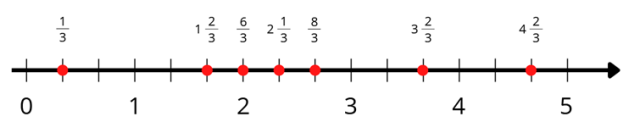 Zaznaczając punkt na osi, zwróć uwagę na liczbę przed ułamkiem – ta liczba powie Ci, za którą liczbą oznaczoną na osi powinien się znajdować punkt, a później na licznik ułamka – ta liczba powie Ci, na której dokładnie kresce powinniśmy zaznaczyć dany punkt.