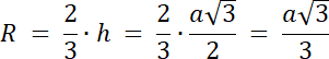 W tym zadaniu wykorzystaj wzór na wysokość i promień okręgu opisanego na trójkącie równobocznym.