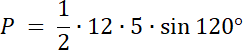 Skorzystaj z twierdzenia na pole trójkąta, które uwzględnia sinus kąta w trójkącie i oblicz to pole.