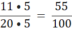 Liczba w mianowniku ma dwa zera, więc będą dwie cyfry po przecinku: 0,55