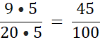 Liczba w mianowniku ma dwa zera, więc będą dwie cyfry po przecinku: 0,45