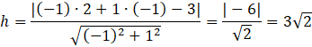 . Skorzystaj ze wzoru na odległość punktu C(x0, y0) od prostej o równaniu ogólnym: Ax + By + C = 0, który wyraża się za pomocą wzoru: