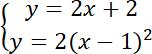 Układ równań rozwiążemy metodą podstawiania. Do drugiego równania w miejsce y podstawimy 2x + 2.
