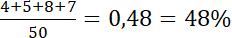 Łącznie mamy 50 liczb, zatem medianą są 25 oraz 26 liczba.