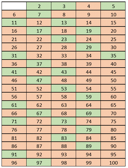 2, 3, 5, 7, 11, 13, 17, 19, 23, 29, 31, 35, 37, 41, 43, 47, 53, 57, 59, 61, 67, 69, 71, 73, 79, 83, 89, 91, 97.