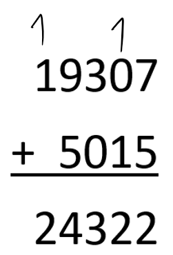 Aby dodać liczby sposobem pisemnym, dodaj cyfry w tych samych kolumnach i zapisz ich sumę pod kreską w tej samej kolumnie. Jeśli wynik jest większy od 9, cyfrę jedności napisz w tej samej kolumnie, a cyfrę dziesiątek dodaj do następnej kolumny po lewej.