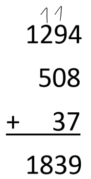 Aby dodać dwie liczby sposobem pisemnym, dodaj cyfry w tych samych kolumnach i zapisz ich sumę pod kreską w tej samej kolumnie. Jeśli wynik jest większy od 9, cyfrę jedności napisz w tej samej kolumnie, a cyfrę dziesiątek dodaj do następnej kolumny po lewej.