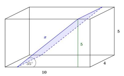 Przekrojem prostopadłościanu jest prostokąt, którego drugi bok (x)wyznacz, korzystając z zależności trygonometrycznych w trójkącie prostokątnym.
