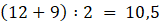 Znajdź średnią arytmetyczną dwóch środkowych liczb 12 i 9.
