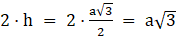 Wysokość trójkąta to połowa przekątnej sześciokąta.