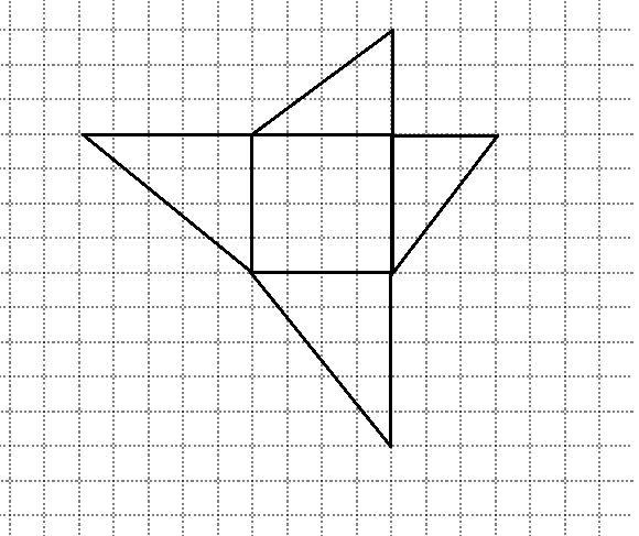 Rysując siatkę, pamiętaj, że krawędzie ścian, które będzie trzeba ze sobą połączyć, muszą być równej długości. Wiadomo z treści zadania, że wszystkie ściany boczne są trójkątami prostokątnymi. Należy je narysować w taki sposób, aby po sklejeniu siatki, krawędzie boczne złączyły się w jednym wierzchołku, którego spodkiem będzie jedna z nich.